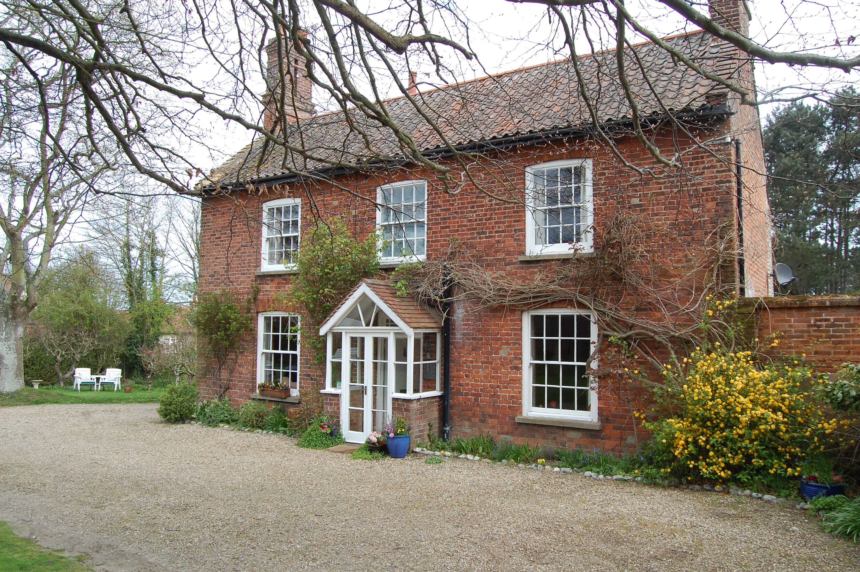 Mill House is a charming little B&B. A picturebook cottage of red brick, rather than the local flint, it is set back from the road and nestles in its own beautiful garden, slightly bare on this early spring evening but spots of colour were visible among the shrubs that were bursting into flower. Mrs. P and I were booked to spend the night here and we found it after a small amount of searching (good luck with a phone signal out on the coast!) and were greeted at the door by Denise, our friendly and welcoming host. She showed us up steep, narrow stairs to our rooms, telling us in which ones the famous guests had stayed (our bathroom had been installed in part of Scott’s room).