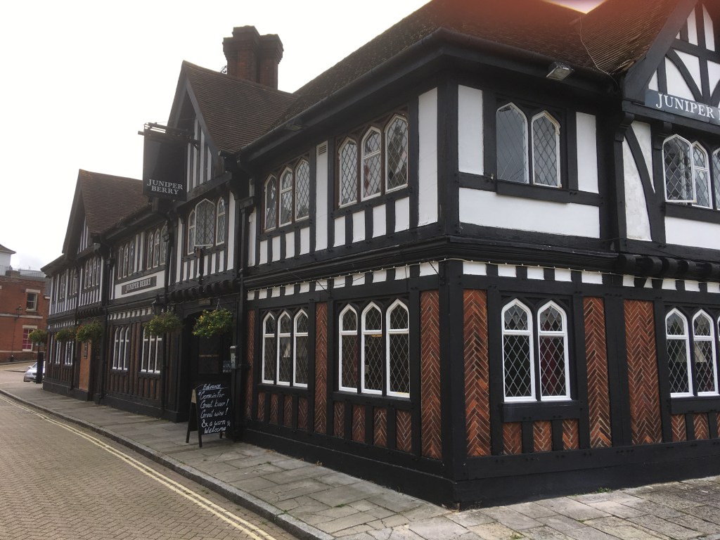 As luck would have it I arrived at The Juniper Berry at midday, just as it was opening for lunchtime. It was friendly enough but with an elderley, and very ‘local’ clientele. They had real ale but neither pump was working, the landlord working hard to fix it. I had a Guinness and very nice it was too. The lounge bar was quite pleasant, and quiet and empty. There was some nice, warm wood panelling and old photographs on the walls. A good selection of books by the fireplace too, which is always a welcome sight in a pub.