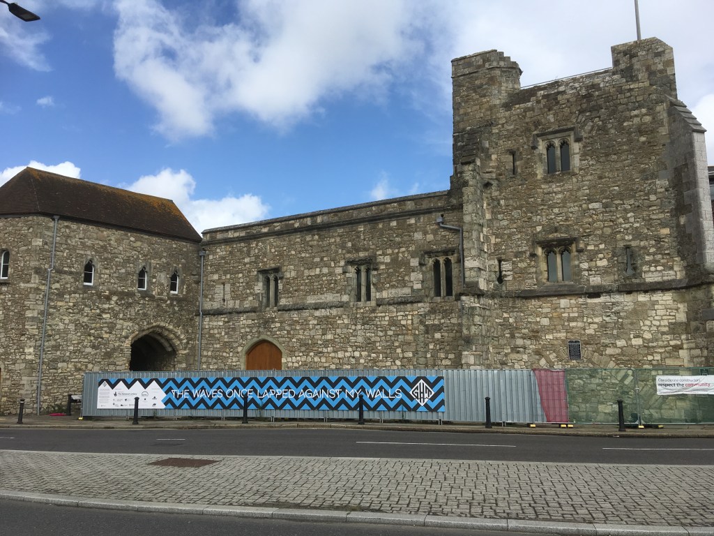 From here, the walk wound through the town towards the docks, past the Medieval Merchant’s House, past the site of the Theatre Royal, where Jane spent many happy evenings, transformed, in what looks like the 1960s, into a characterless block of flats. Further towards the waterside, some further sections of the wall remain. The shore has been built up in the last 200 years and a road curves around the outside of the wall where water once would have lapped. On the far side, enormous ships, like floating tower-blocks, waited for their cargo to be loaded before moving on to the sea. The Water Gate, where Jane embarked on a trip to Hythe, is now a fair distance inland, as is the park, known locally as ‘The Beach, where the Austens once strolled by the water and Frank Austen went ice skating in the winter.