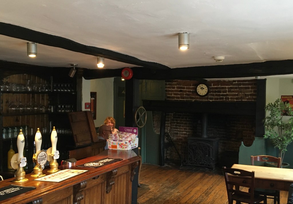 The Greyhound Inn is a few steps from the front door of Lace Cottage; I headed there now. MacNeice liked to sit under the clock in the public bar. I wasn’t able to explore properly because of lockdown regulations, but I did have a look in the front bar and saw the clock, over a stove which would have made a very cosy nook in cold weather. It was grey and overcast, threatening to rain. I was shown to an outside table by an extremely friendly young woman. All the staff, in fact, all female, were very polite, very smiley and extremely well organised. She quickly brought me a pint of Ferret (a lovely tawny bitter brewed in Dorset) and took my order. My steak and ale pie was brought out quickly (a little TOO quickly, if I’m honest) but it was hot and came with chips and gravy, which is all I want from life these days. It was pleasant in the courtyard dining area: not cold and the rain held off long enough for me to finish my lunch and read for a few minutes before heading off to Berkhamsted.