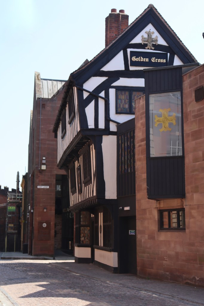 It was time to meet Mrs. P for lunch, so I walked back to the Golden Cross Inn. This was favourite pub of the young Philip Larkin. It is a fine old building: half-timbered with projecting upper stories. Inside, there is a great deal exposed wood, a tiled floor and some lovely old glazed screens. There was even a group of old men sharing a pint: a guarantee of quality in an old pub. We ordered fish and chips and I had a pint of Coffin Stout and it was wonderful.