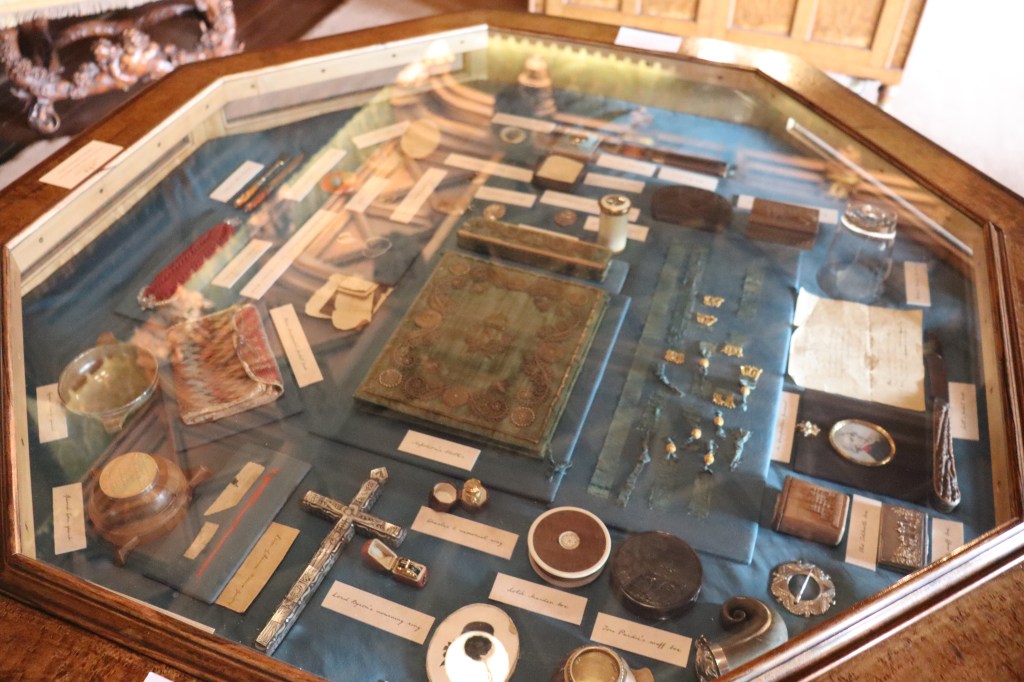 By far the finest room is the library: books and paintings line the walls here too and, in the centre of the room, a glass-topped table. This contains treasures the like of which I have never encountered in a single place: a lock of Bonnie Prince Charlie’s hair; Napoleon’s notebook; Byron’s wedding ring. The table is absolutely stuffed with interesting things. There are stories everywhere. There is the tale of the young bride who played hide and seek with her new husband by locking herself in a trunk and eagerly awaiting discovery, only to be discovered several years later. There is the door of Edinburgh jail, forming a secret entrance to Mrs. Scott’s bedroom, through which Sir Walter could visit her. Ask the staff to tell you any of these stories and they will be only too happy to oblige.