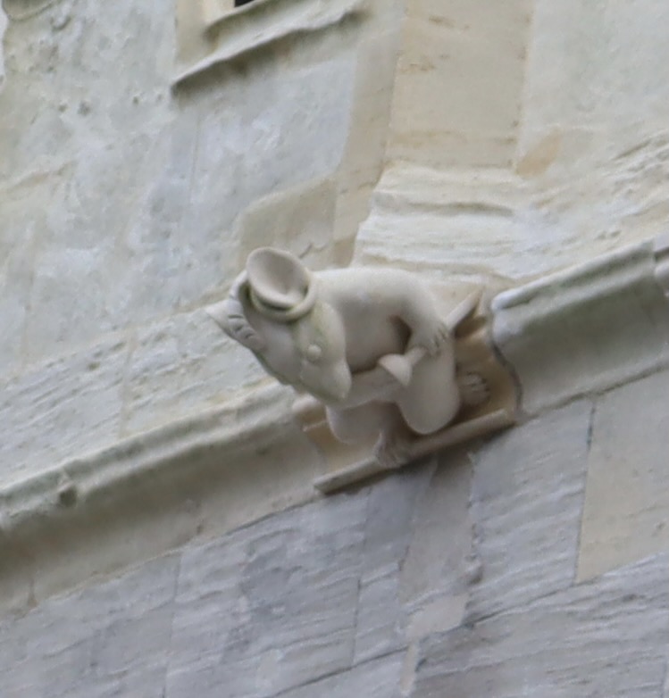 For a post-prandial, I took a stroll across the road to the church opposite. St. Mary’s is a magnificent building; the grandiosity of the churches in Beverley show how wealthy the town once was, although this one is not as magnificently gothic as its its sister at the other side of town. The stone carvings have recently been replaced with fresh, new carvings featuring animals from the Narnia novels of CS Lewis. They are high above the clerestory at roof level and hard to see clearly and even harder to photograph. Even at this distance, however, I was able to make out a Lion, a wolf, a mouse, a beaver and Mr. Tumnus.
