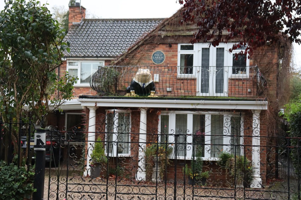 A short drive from the campus will take you to the last of Larkin’s houses in Hull. It is a surprisingly modern building, with wrought iron balustrades and wooden gables and even a large, fibreglass toad (I wasn’t able to find out why this is here but I am guessing it is a reference to the poem ‘Toads’. The house is a marked contrast to his previously residence: a large Victorian villa in the midst of Pearson Park, where Larkin rented the top-floor flat.