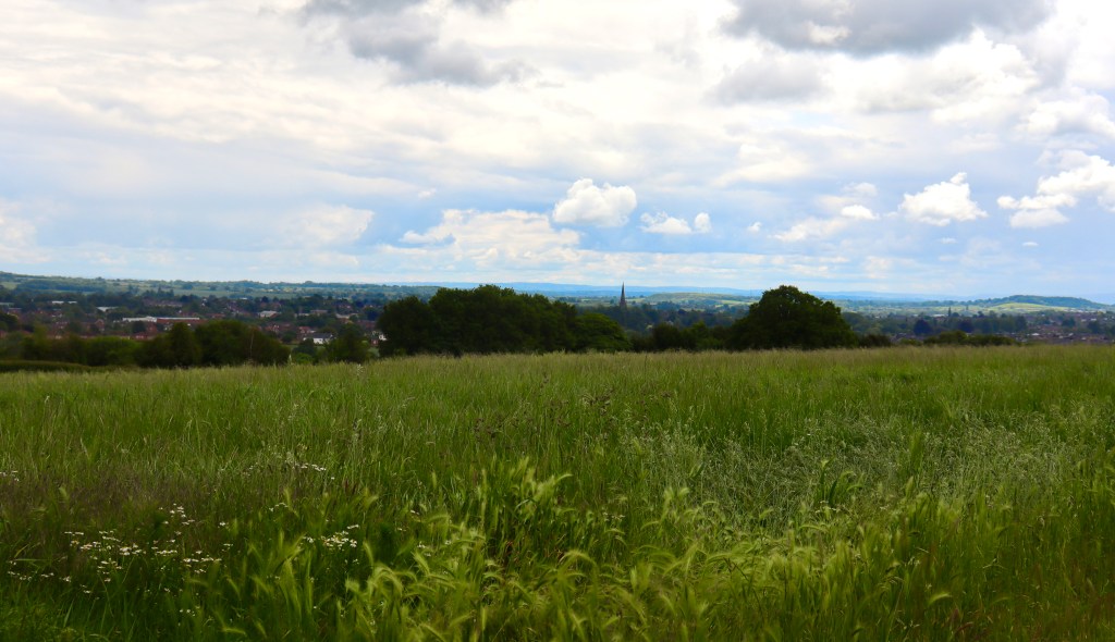 It wasn’t a very clear day but I could hills in the distance. The hilltop is occupied by a radio mast, so you can’t get access to the summit, but there is a gate on the north-west side of the road from which you can see the Shropshire Clees to the West, and another gate next to the mast which gives a view over Bromsgrove. It wasn’t a very clear day but I was able to see the hills in the distance, which had taken on an appropriately blue hue.