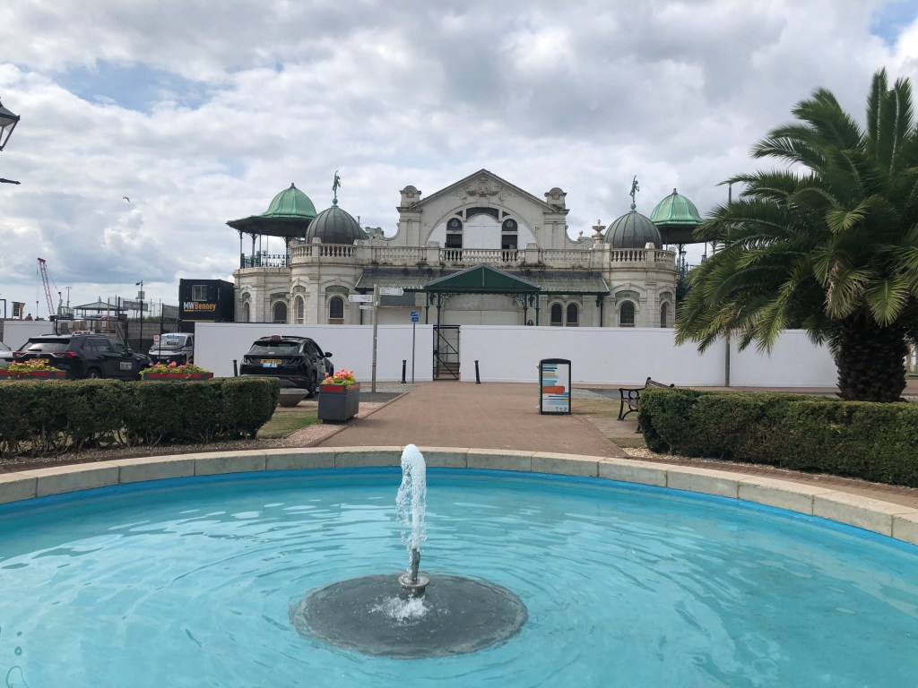 Torquay is centred on a harbour, with little boats docked in ordered rows and buildings on three sides: cafés, restaurants and bars predominate. I headed first to the tourist office, pausing briefly to admire the new bench statue of Christie, by Elisabeth Hadley, erected on the Harbourside inn 2025. In the tourist office, you can pick a leaflet which will guide you around the ‘Agatha Christie Mile’: a short walk around the town taking you to Christie related locations. I walked around it on a pleasant morning in July while Mrs. P availed herself of shopping and seal-watching opportunities.